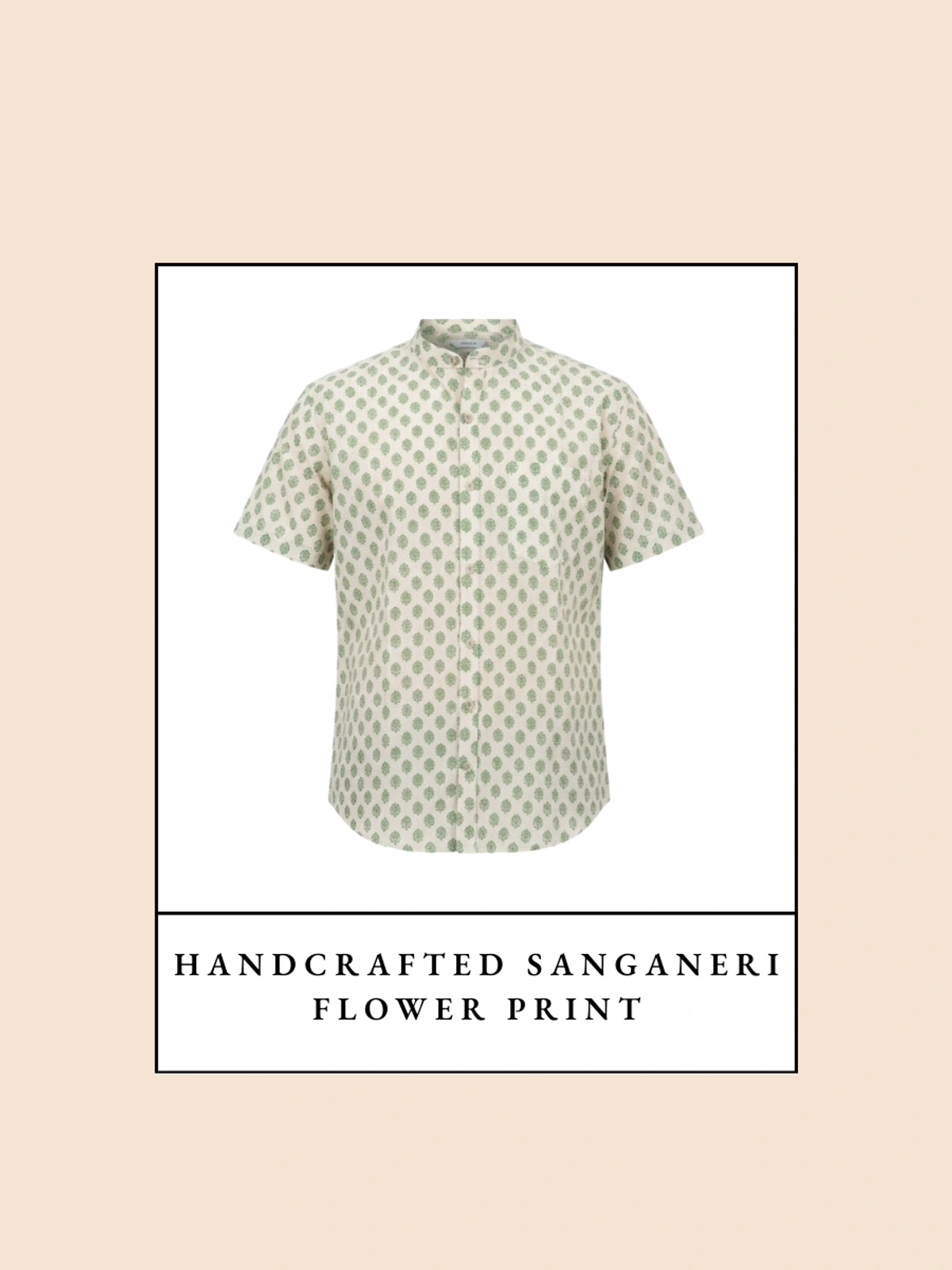 Handcrafted Sanganeri Flower Print Half-Sleeve Shirt Mandarin Collar - Pure Cotton